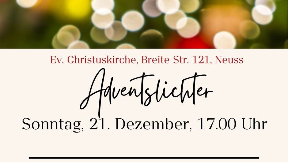 Ein festliches Adventskonzert für Groß und Klein bieten die diesjährigen „Adventslichter“ am Sonntag. 21.12.2025, 17.00 Uhr, in der Ev. Christuskirche!