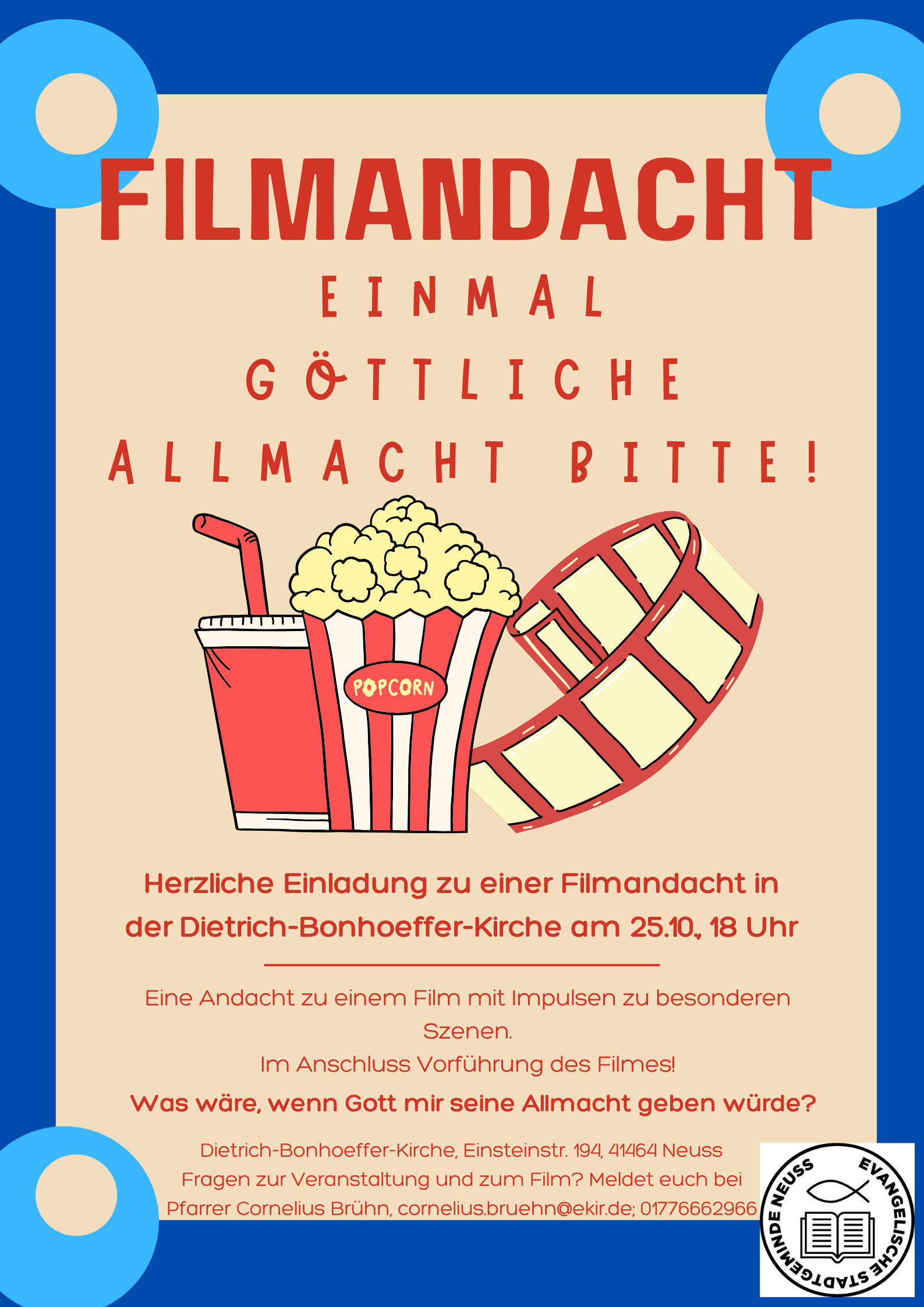 Bei Fragen zum Format oder zum Film steht Pfarrer Cornelius Brühn gerne zur Verfügung: cornelius.bruehn@ekir.de / 01776662966