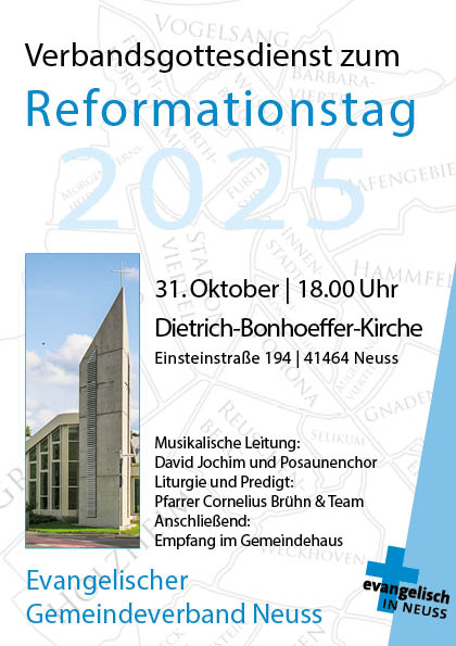 Am 31.10. feiern wir um 18 Uhr den Reformationstagsgottesdienst im Ev. Gemeindeverband Neuss.